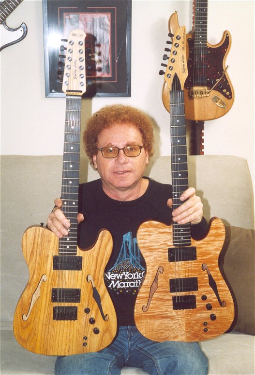 PREV   NEXT     EXIT PICTURES That's me with the new 6-string, and the 12-string I also built. Behind me, on the wall, is a Carvin "Bolt" that I also assembled. PREV   NEXT     EXIT PICTURES